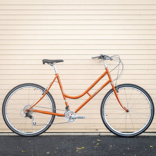 Our country bikes are zippy like a road bike, with added load-carrying capacity, and tire clearance to 48mm. Kind of like a gravel bike, but with rack braze-ons and a classic, beautiful look (instead of amorphous carbon). Super useful and comfortable. If you ride mostly roads and want some carrying capacity, get one of these. Our most popular style.