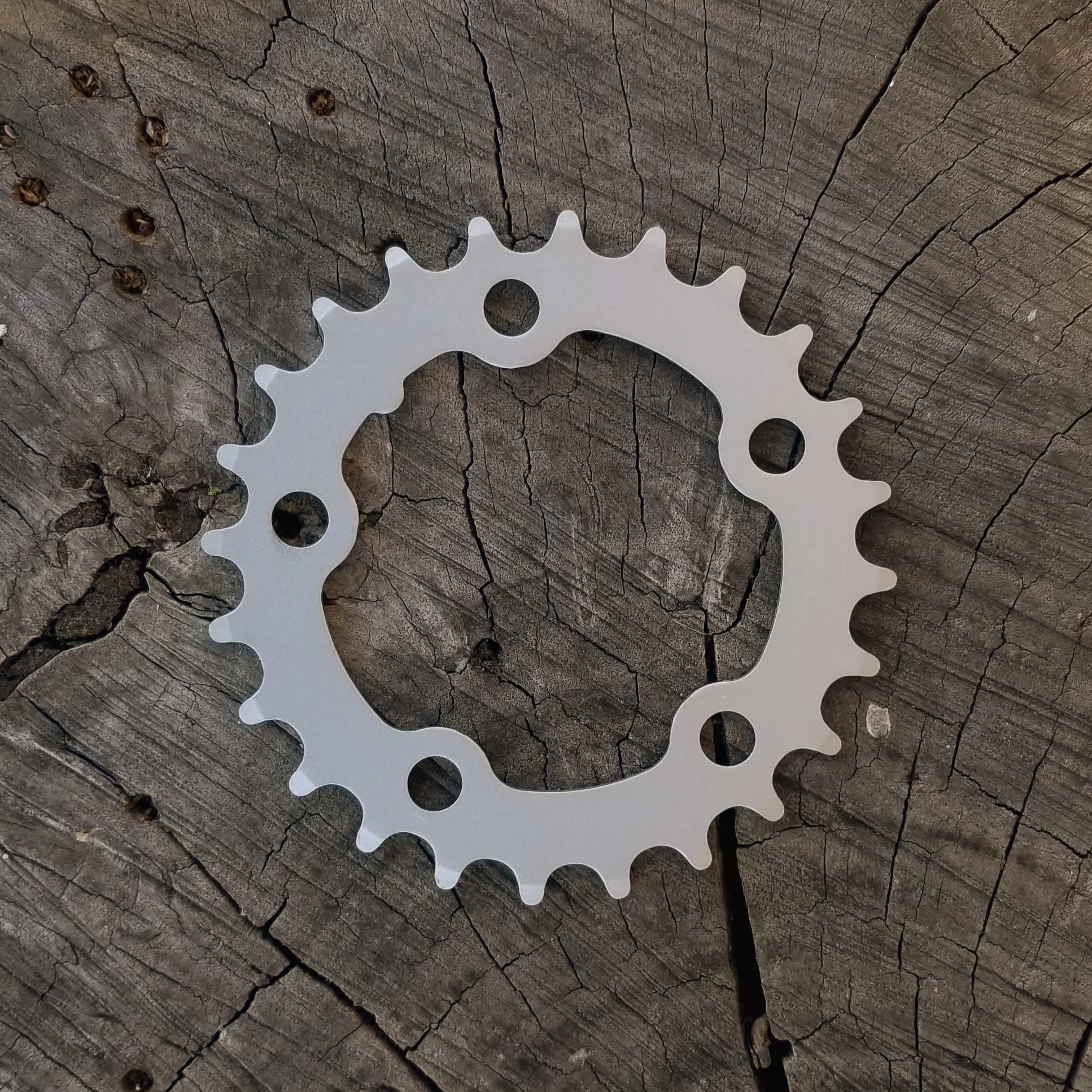 Granny gear 74 mm bcd (bolt circle diameter) x 24t or 26t or 28t.