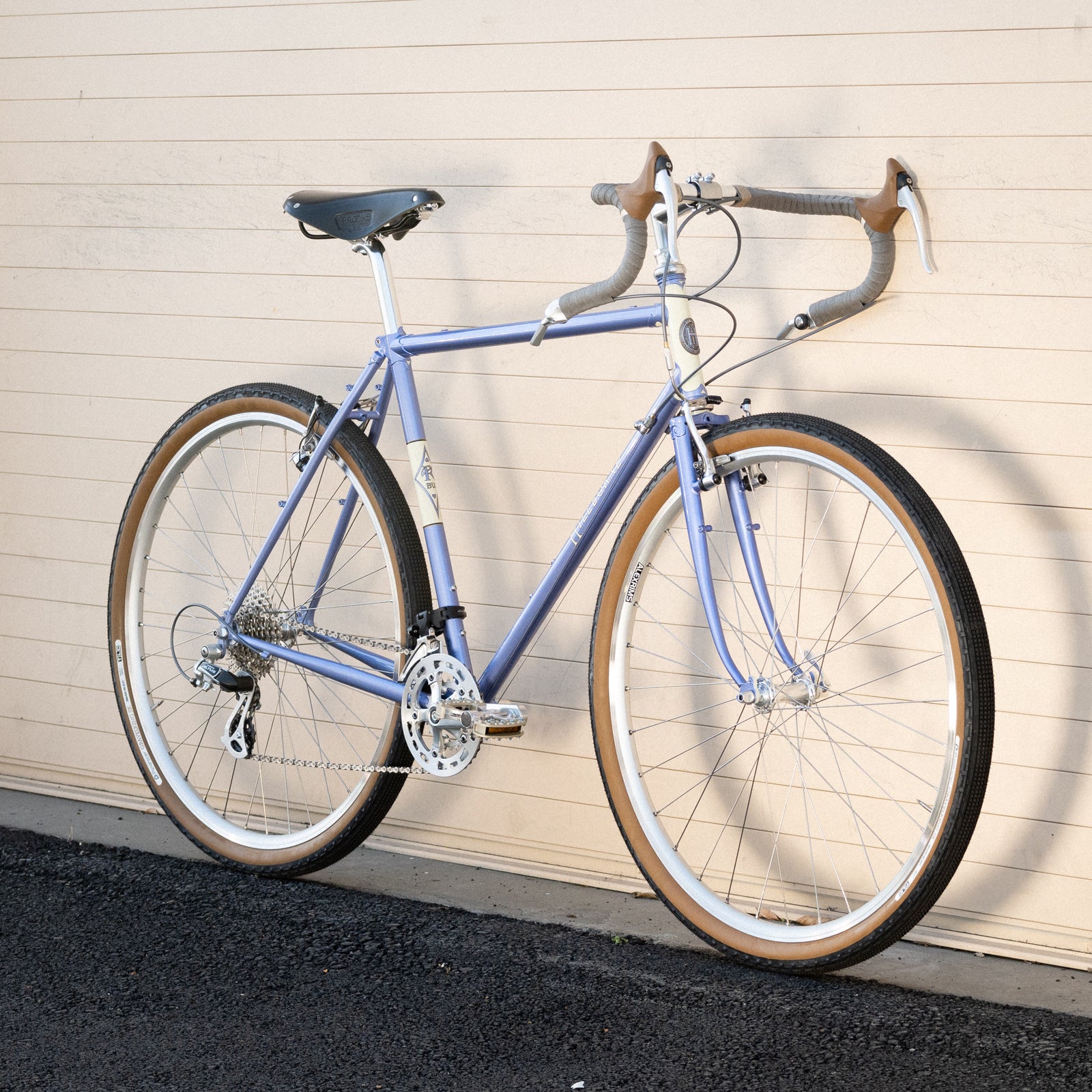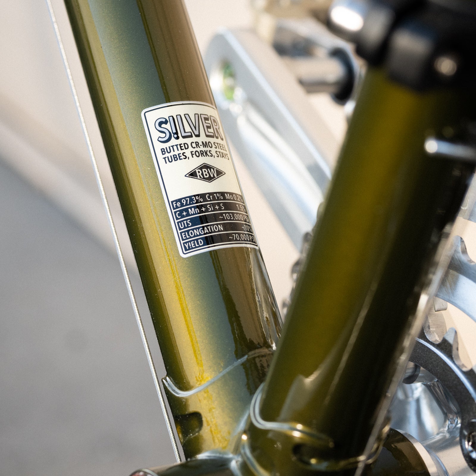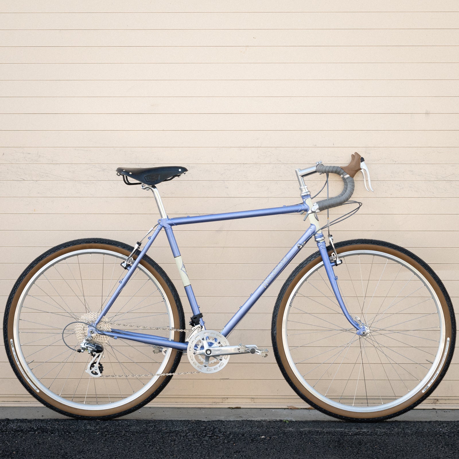 FRAME: Our-designed SILVER (brand) CrMo tubing in dimensions we see fit. Geometry is ours alone, also. It rides like all Rivendells. Good with drop bars or uprights. Fits tires up to 45 with fenders, 48 without.