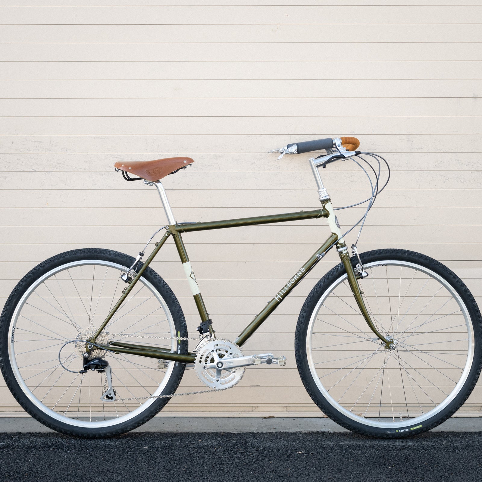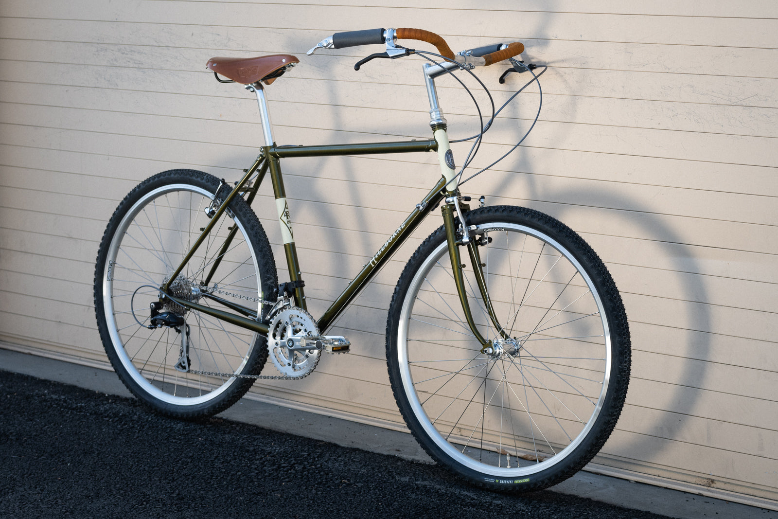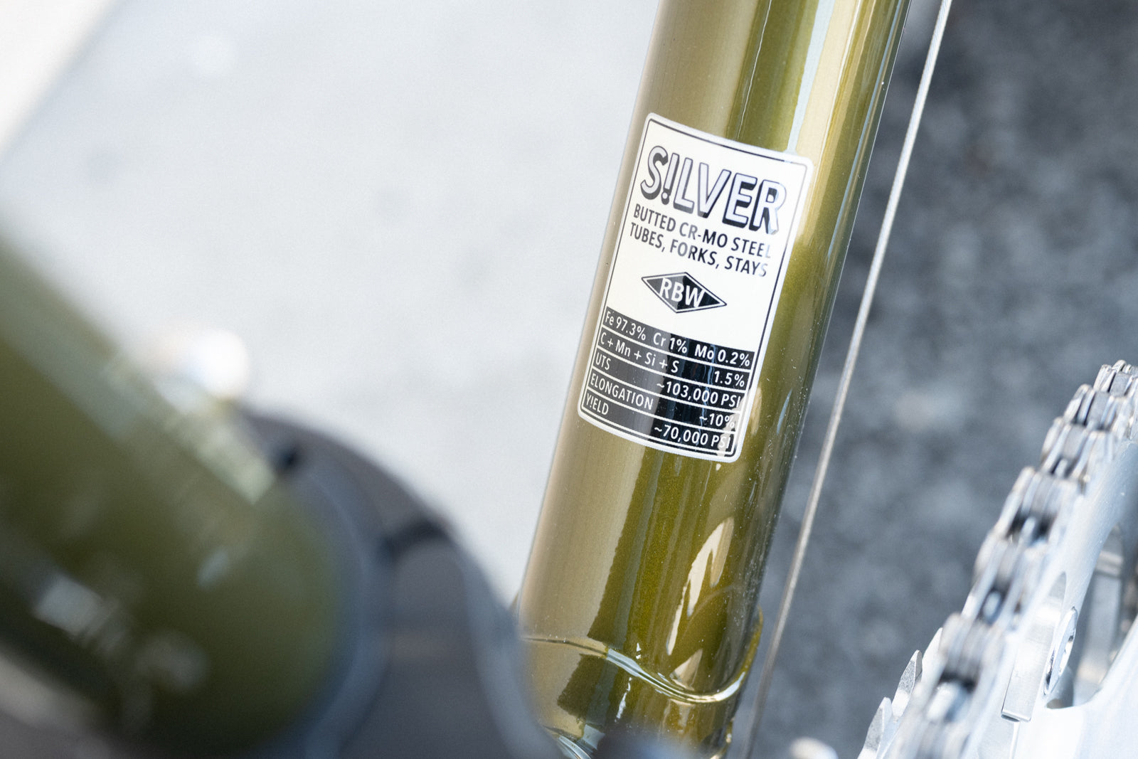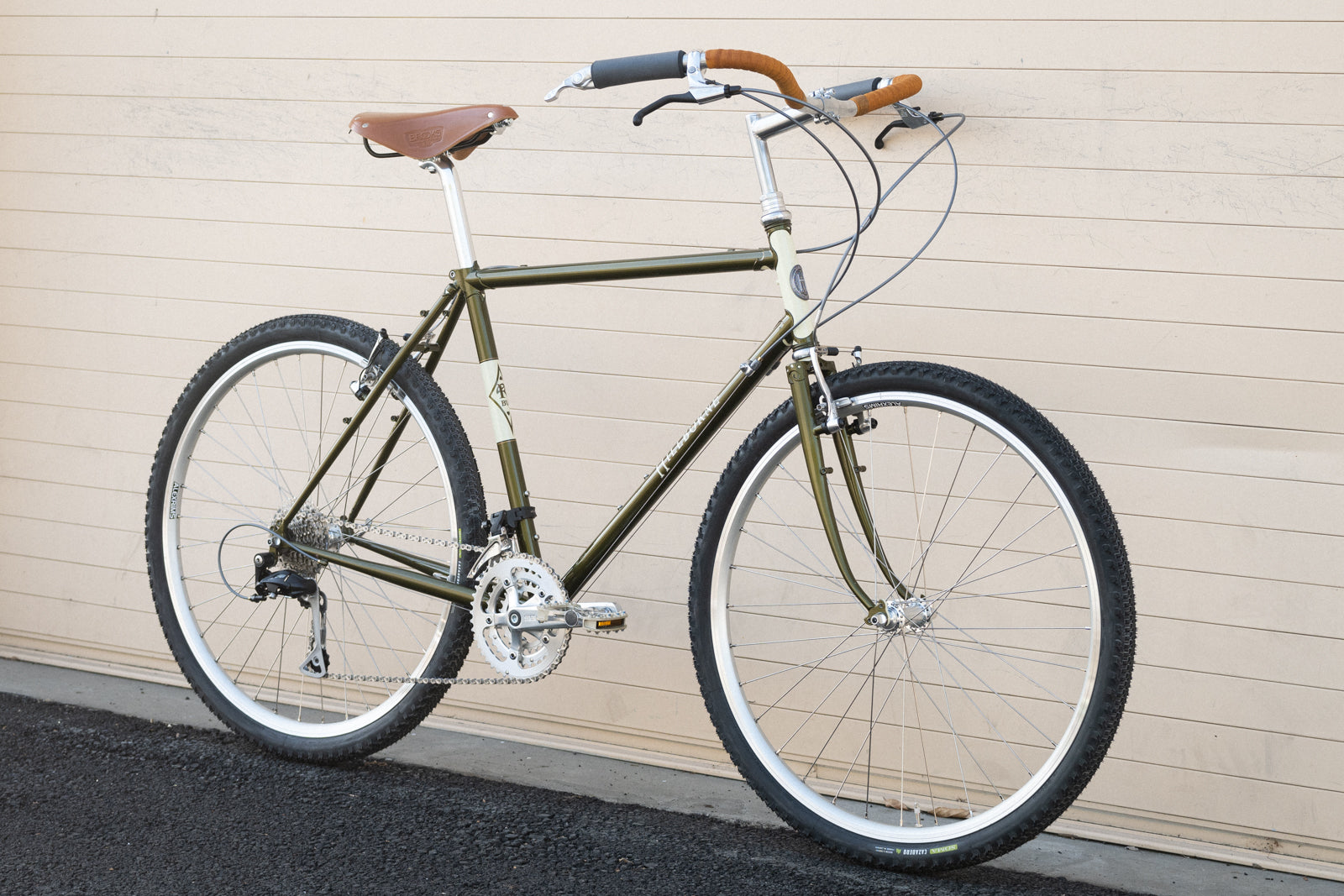 FRAME: Our-designed SILVER (brand) CrMo tubing in dimensions we see fit. Geometry is ours alone, also. It rides like all Rivendells. Good with drop bars or uprights. Fits tires up to 45 with fenders, 48 without.