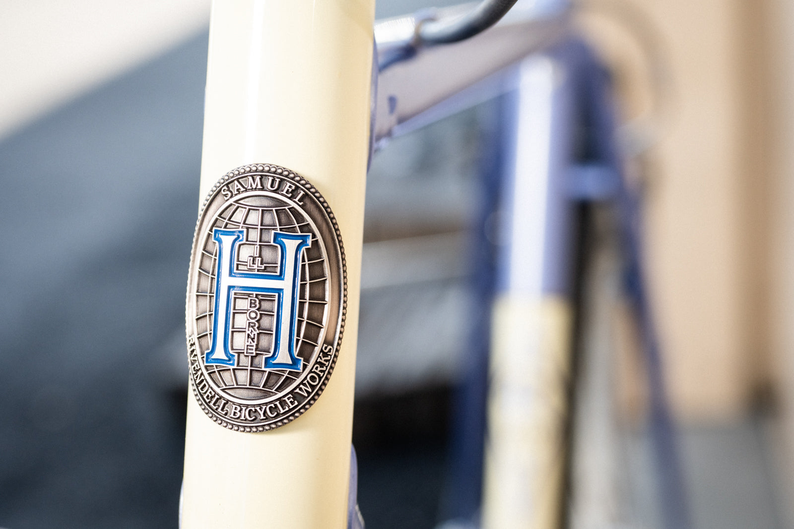 The Sam Hillborne is a classically styled frame with sweated-over graphics. The frame joints are lugged, the fork has a crown, and they're all our own designed investment castings, starting from rocks, which are made into metal, and shaped with precision and beauty by a process developed in China ten thousand years ago.