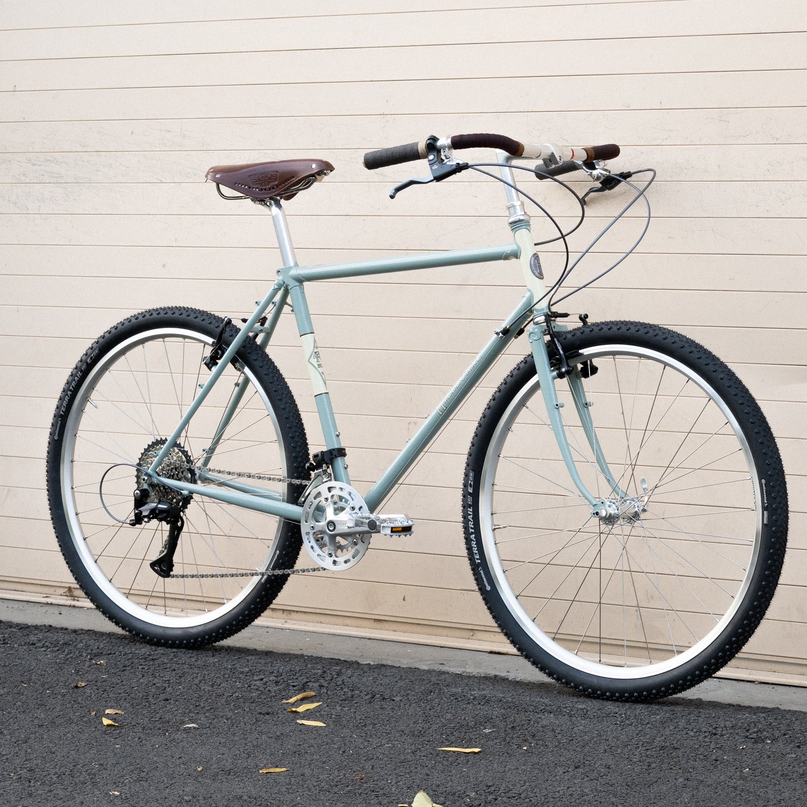 FRAME: Our-designed SILVER (brand) CrMo tubing in dimensions we see fit. Geometry is ours alone, also. It rides like all Rivendells. Good with drop bars or uprights. Fits tires up to 45 with fenders, 48 without.