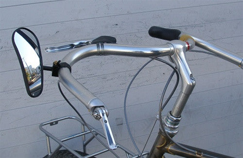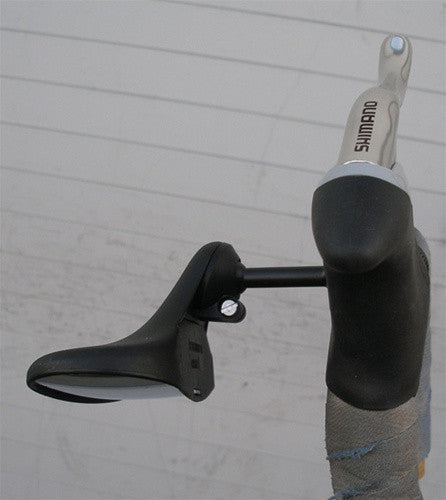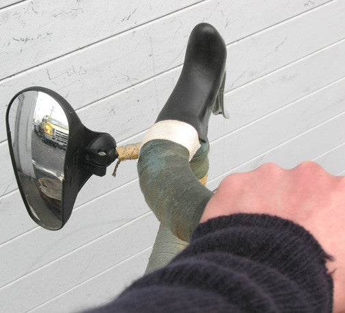 It's the best handlebar mounted bike mirror available. We've test them all. Mounts with a hose-clip to almost any handlebar.