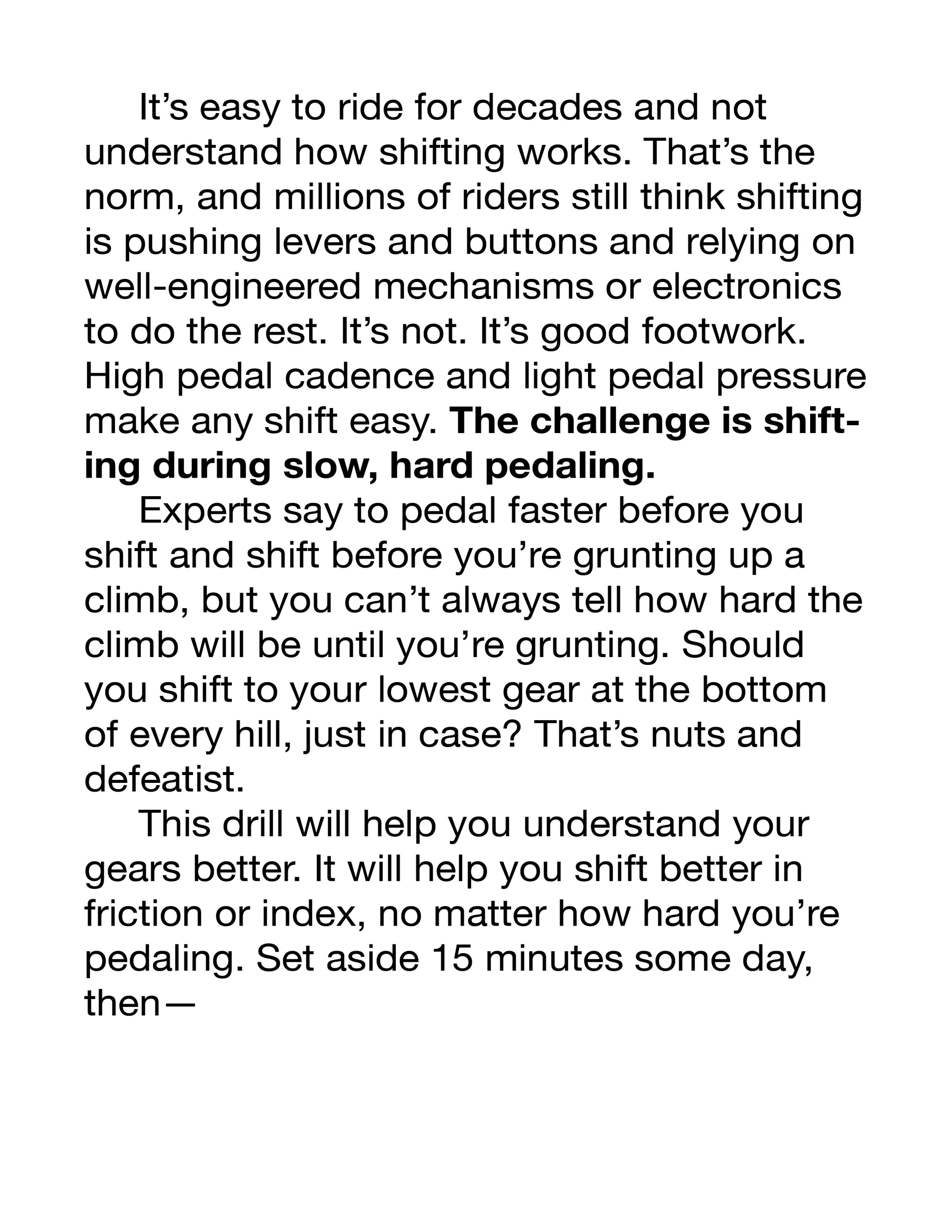Friction shifting isn’t hard, but it takes practice, and these days you can buy shifters that shift for you.