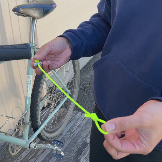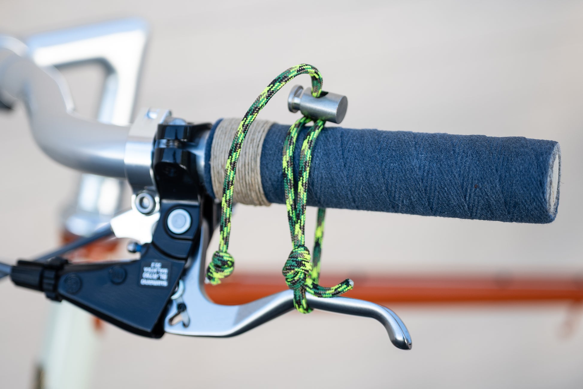 My first bart brake was a gift from Matt Feeney from Pass and Stow Racks. Rich swears by this plastic one made by Blackburn in the 90's. Sometimes Will uses a Casio or an irish strap. Really, you can do it with about any strap-like thing but this one is made by me with a nice zinc adjuster and one of three fun cord colors (picked at random)