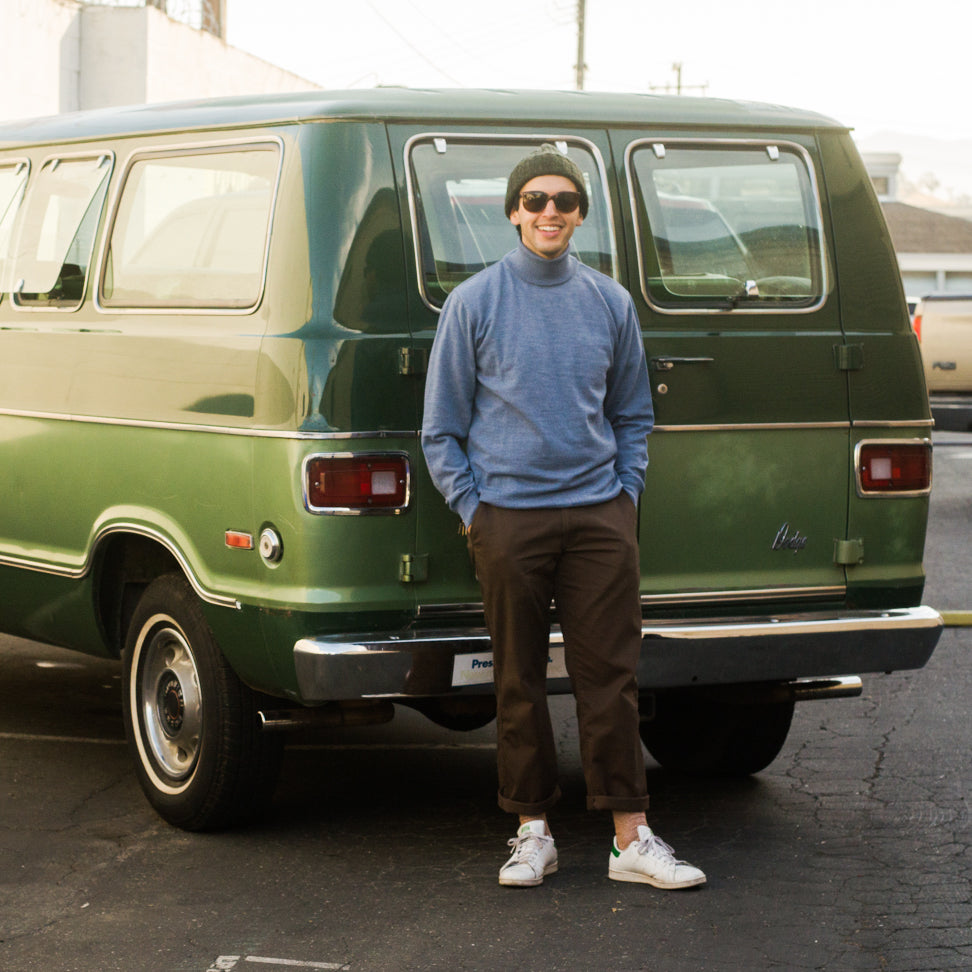 We’ve had a 20+ year relationship with a sweater-maker in England, who even came to Rivendell once, around 2009, probably as a business expense excuse to see San Francisco. Their standard sweaters are too normal for us, so we typically design customs from scratch or take one of their existing models and add some quirk to make it a little groovier.